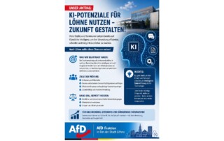 Ein Antrag der AfD im Stadtrat Löhne: Künstliche Intelligenz ist längst kein Zukunftsthema mehr – viele Städte setzen sie bereits gezielt ein, um ihre Verwaltung effizienter und bürgerfreundlicher zu gestalten. Wir finden: Auch Löhne sollte [...]